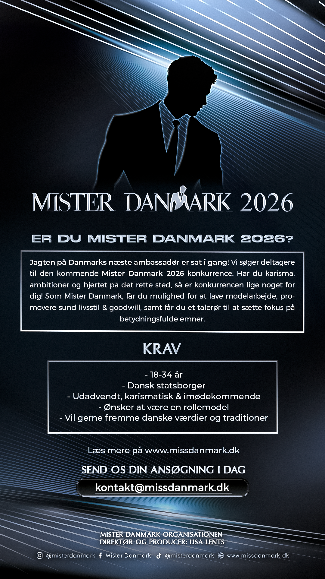 Send os en ansøgning med "Mister Danmark® 2026" i emnefeltet.